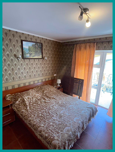 У номері є 1 диван-ліжко та 1 велике двухспальне ліжко. душ, кондиціонер, шафа холодильник. Вид з вікна виходить на внутрішній двір. На кожному вікні стоїть москітна сітка.