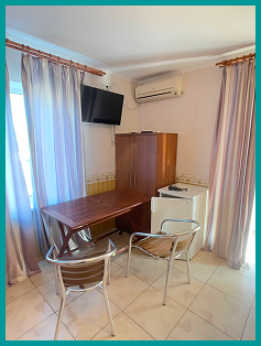 У номері є 2 дивани-ліжка, душ, кондиціонер, шафа холодильник. Вид з вікна виходить на внутрішній двір. На кожному вікні стоїть москітна сітка.